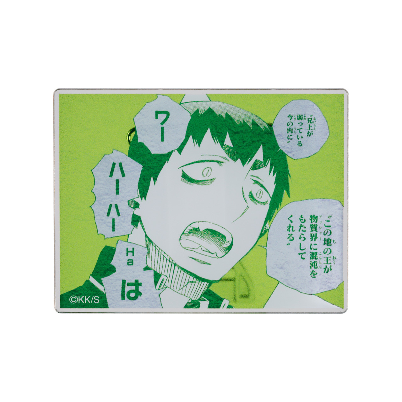 コミックスのイラストを2層のアクリルで表現。クールなキーホルダー。すべてがそろう全種セット。