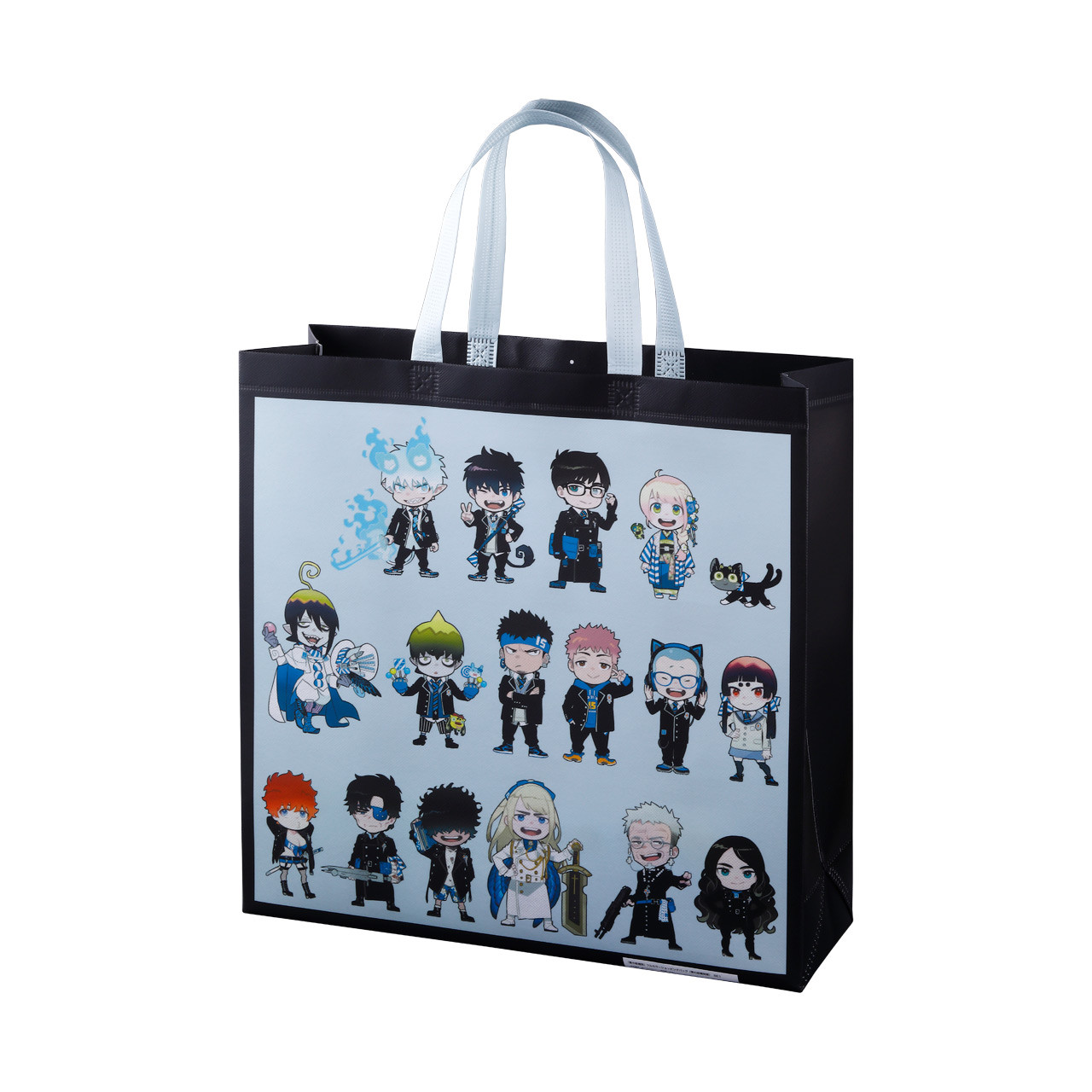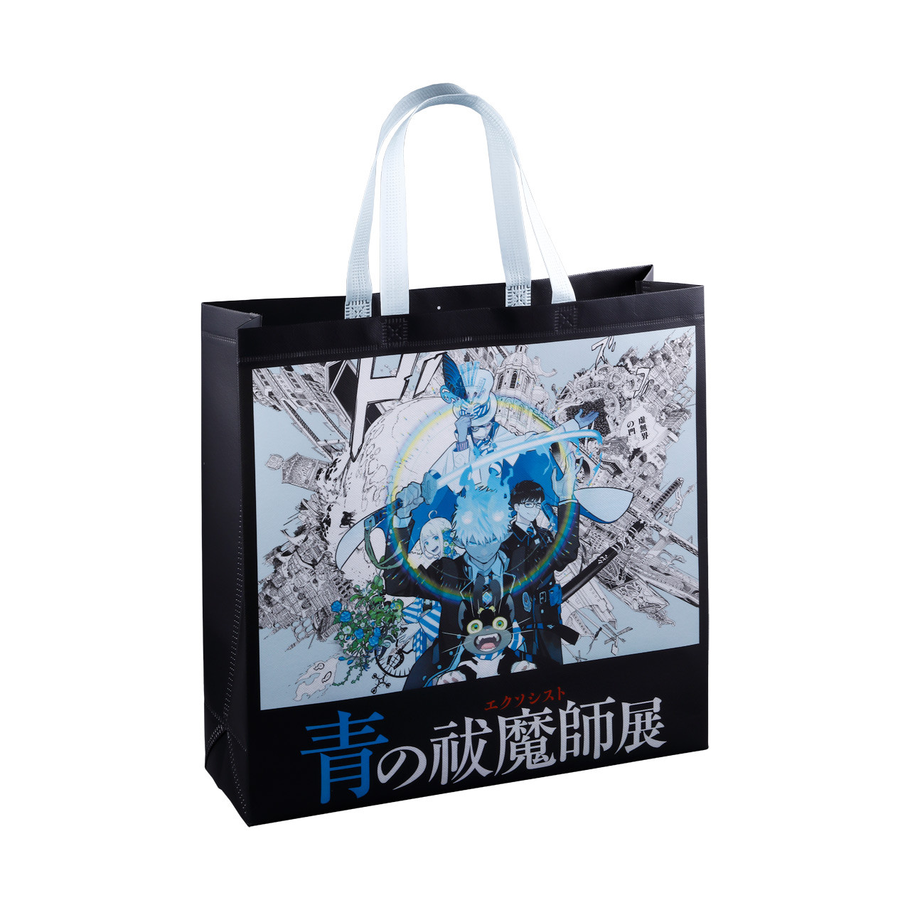 展覧会に来たら手に入れたい、描きおろしキービジュアルと描きおろしSDイラストがデザインされたショッピングバッグ。