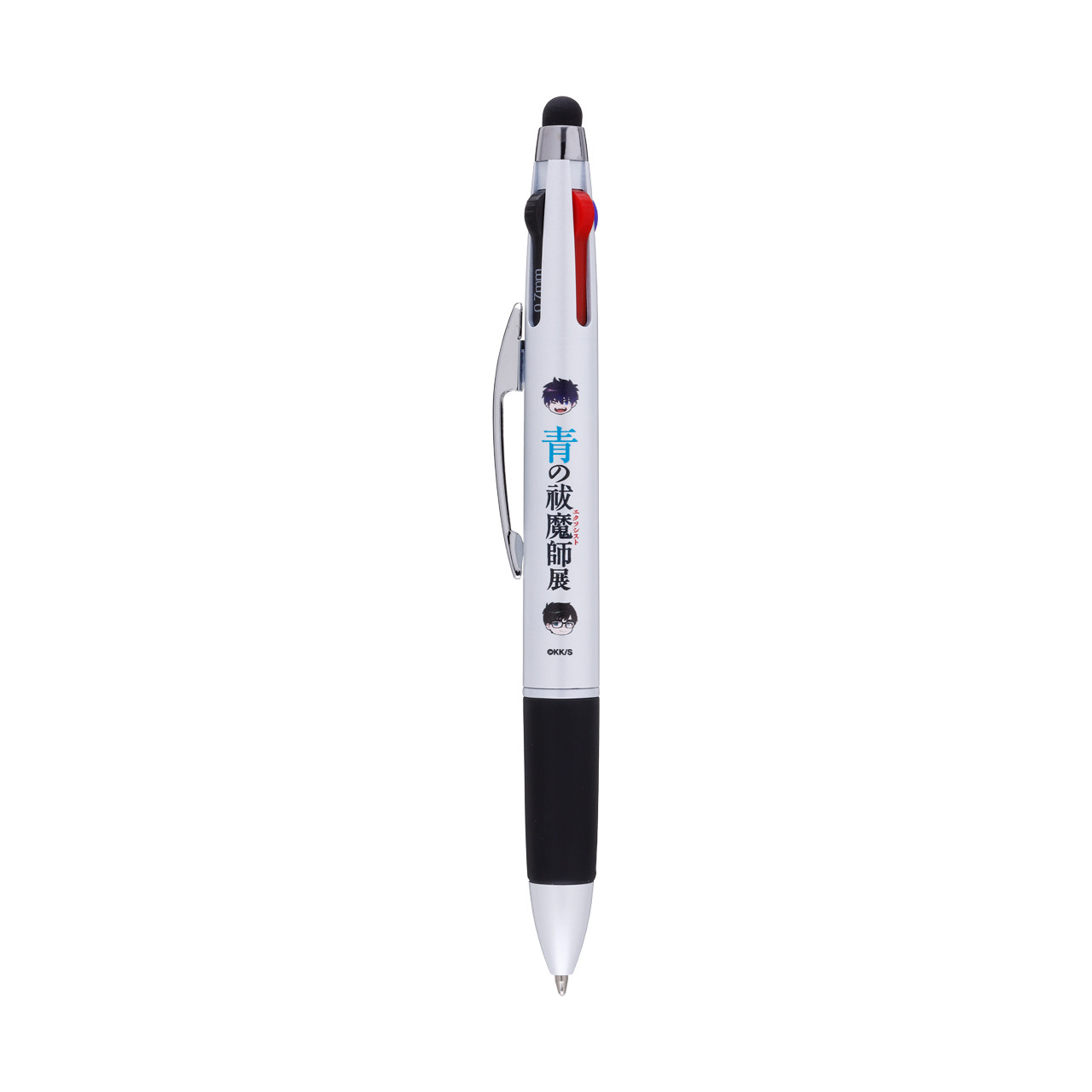 太さの異なる黒色2種と赤、青色の3色のボールペンと、タッチペンが付属している機能性抜群のペン。